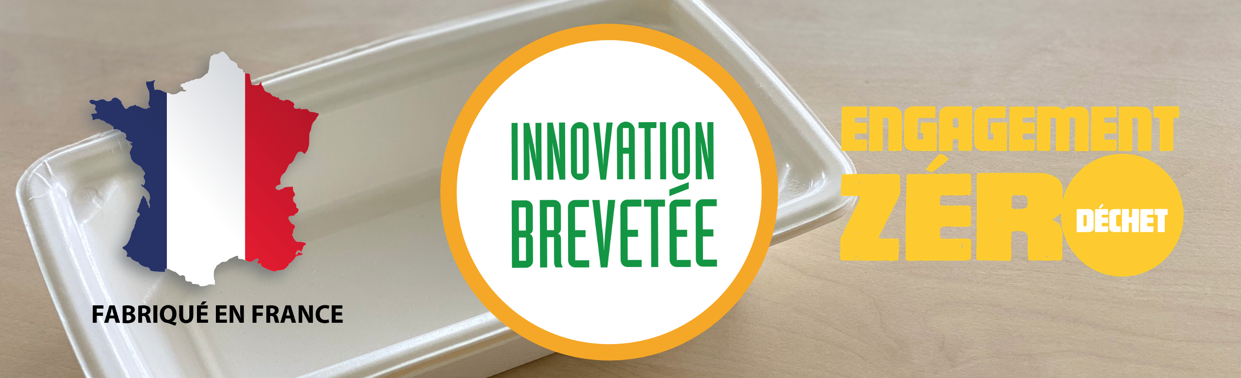 Innovation brevetée : l’association unique d’une barquette en cellulose moulée et d’un film étanche Bioplastique certifié compostable