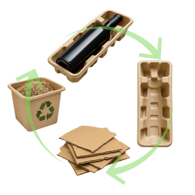 Vos bouteilles racontent une histoire. Elles incarnent votre terroir, votre savoir-faire, votre signature. Cellulopack crée des calages sur-mesure en cellulose moulée recyclée, pensés pour préserver l’intégrité de vos vins et l’élégance de vos packagings.