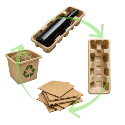 Vos bouteilles racontent une histoire. Elles incarnent votre terroir, votre savoir-faire, votre signature. Cellulopack crée des calages sur-mesure en cellulose moulée recyclée, pensés pour préserver l’intégrité de vos vins et l’élégance de vos packagings.